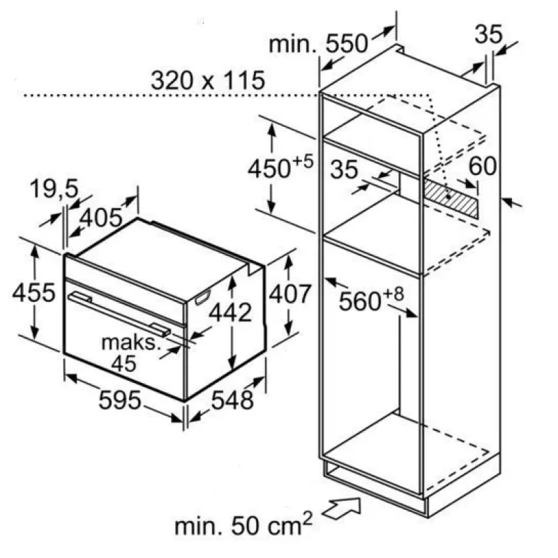 | Размеры ниши для встраивания (ВхШхГ) | 45-45.5х56-56.8х55 см |