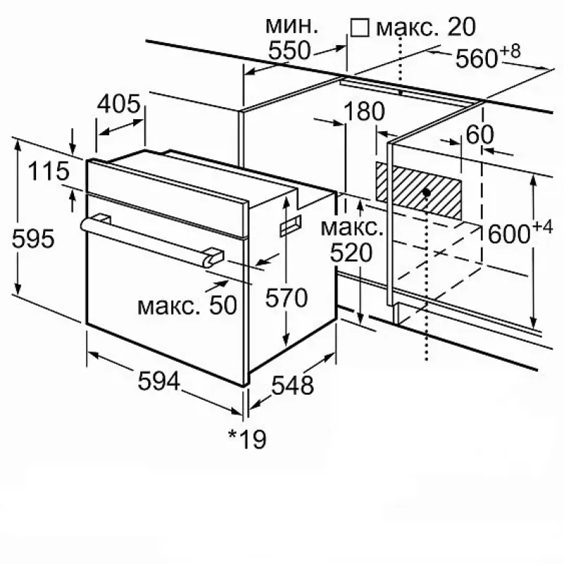 | Габариты ниши для встраивания (ВхШхГ) | 575-597х560- 568х550 мм |