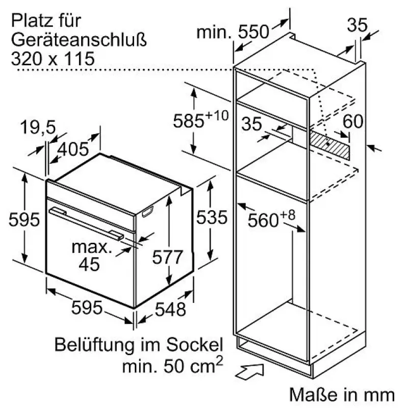 | Габариты встраивания в шкаф (ВхШхГ) | 585-595х560-568х550 |