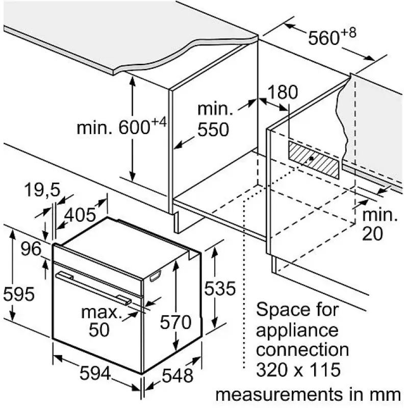 | Габариты ниши (ВхШхГ) | 585-595/600-604x560-568x550 мм |