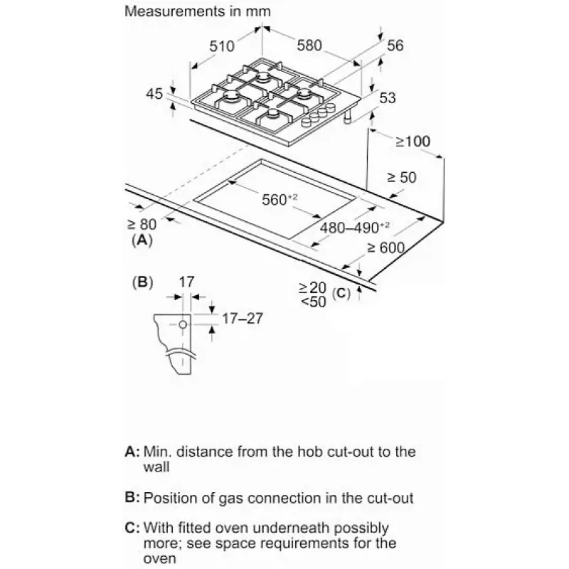 | Габариты ниши (ВхШхГ) | 30х560х480-490 мм |