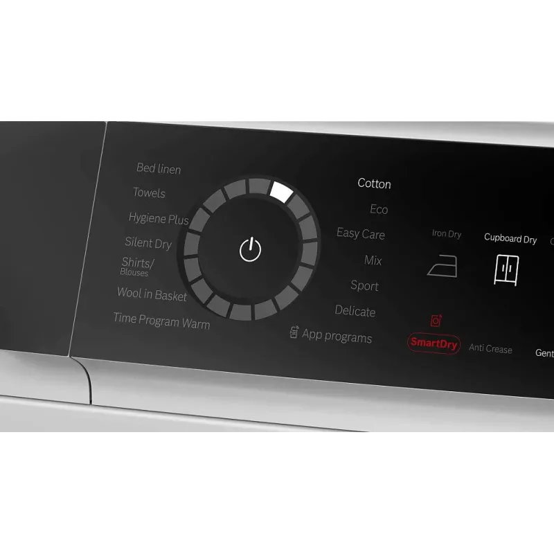 | Программы | сушка хлопка, сушка хлопка эко, сушка синтетики, рубашки, спортивная одежда, тонкое белье, смешанное белье, полотенца, шерсть, деликатное белье, AutoDry, Allergy Plus/ Hygiene, сушка по времени холод, сушка по времени тепло |